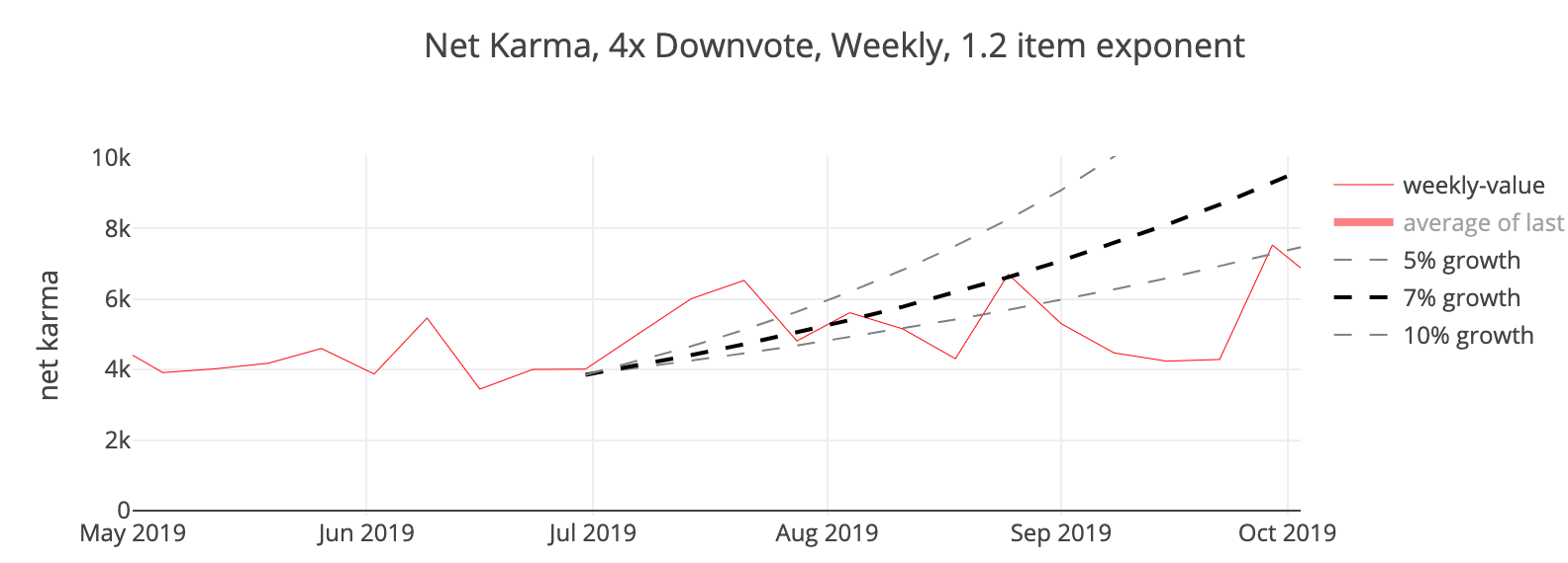In comparison to that, growing votes by 40% in just one quarter (= 2.5%/week) is pretty good. The real question is whether this growth will be sustained. Yet so far so good. October saw the highest level of the karma metric so far in 2019.