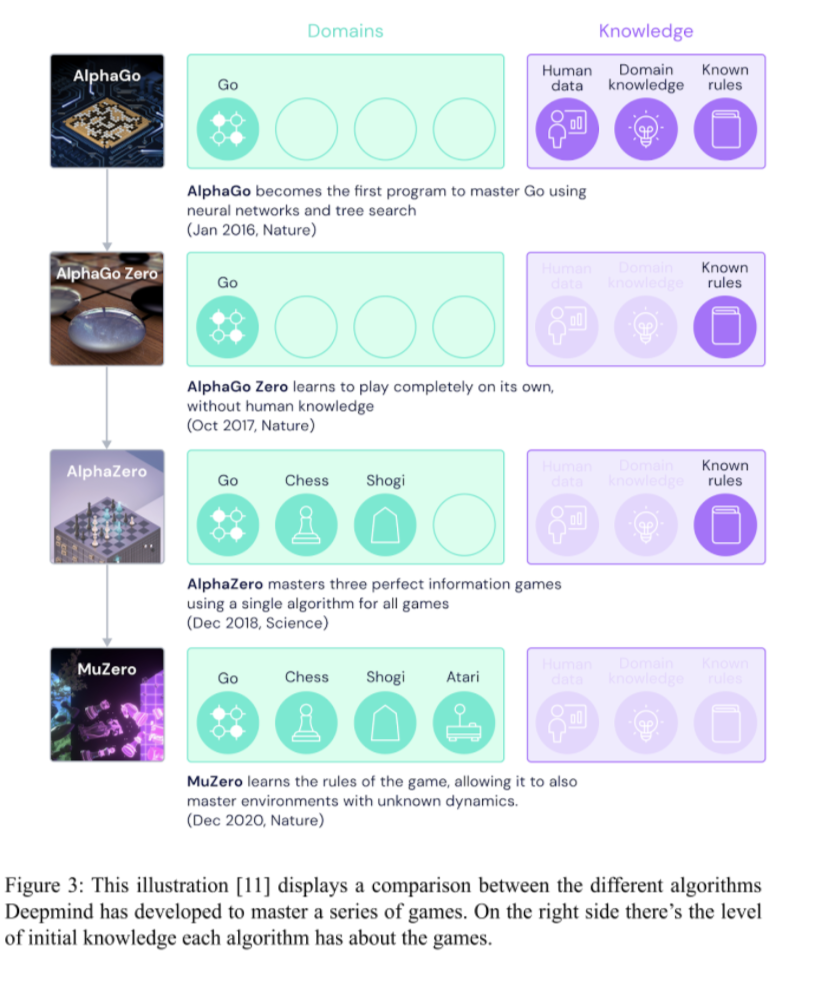 [12] Schrittwieser, J., Antonoglou, I., Hubert, T., Simonyan, K., Sifre, L., Schmitt, S., Guez, A., Lockhart, E., Hassabis, D., Graepel, T. and Lillicrap, T., 2020. MuZero: Mastering Go, chess, shogi and Atari without rules. [https://deepmind.com/blog/article/muzero-mastering-go-chess-shogi-and-atari-without-rules][Acessed 16/11/2021]