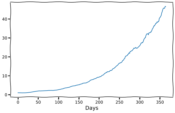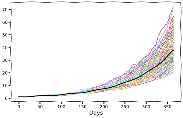 This looks good! It increases similarly to the case without any variation. This is pretty robust when we run the same thing a bunch of times:
