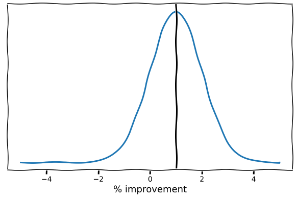 So I decided to test this, drawing the percent improvement from a distribution which was centered on 1%, but could be bigger or smaller:
