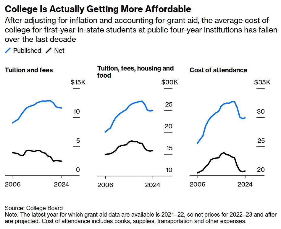 Stefan Schubert: Huge drop in the cost of public college in the US, virtually unreported.