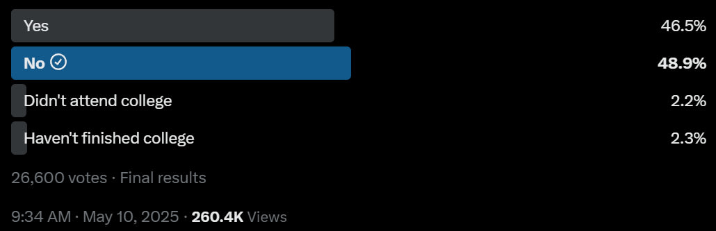I would take this one step further. In the Caplan model, the alternative to college is getting a standard job and career track, like trying to be a manager at Panda Express. Not that there’s anything wrong with that.