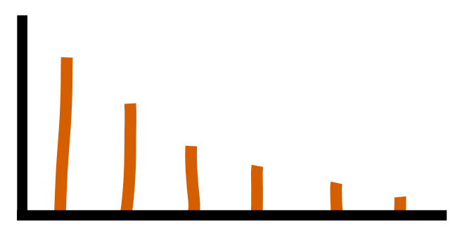 The choice of a negative value for B is so that our distribution converges when values of xs extend up to ∞, which is common for things like energy. We will then get a distribution with the following form: