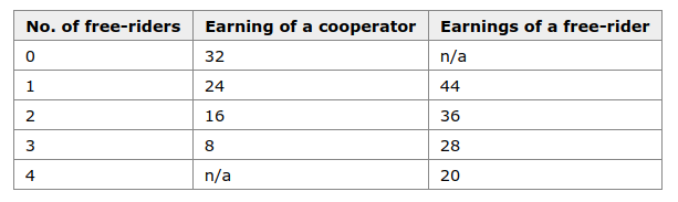 The earnings, obviously, depend not only on subject’s move but also on the willingness of the other players to cooperate and put tokens into the common pool. But free riders get an advantage. They keep their original tokens but also get their share from the pool.