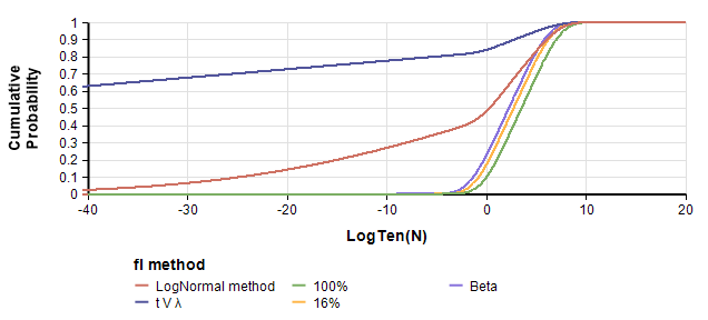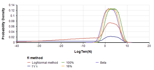 The LogNormal method for , and the method are their Versions 1 and 2. The other three methods are less extreme. 100% and 16% use these as point probabilities for , and Beta uses a Beta(1,10) distribution for . The key conclusion of the paper that there is a significant probability that N is zero remains robust with these less extreme distributions for .