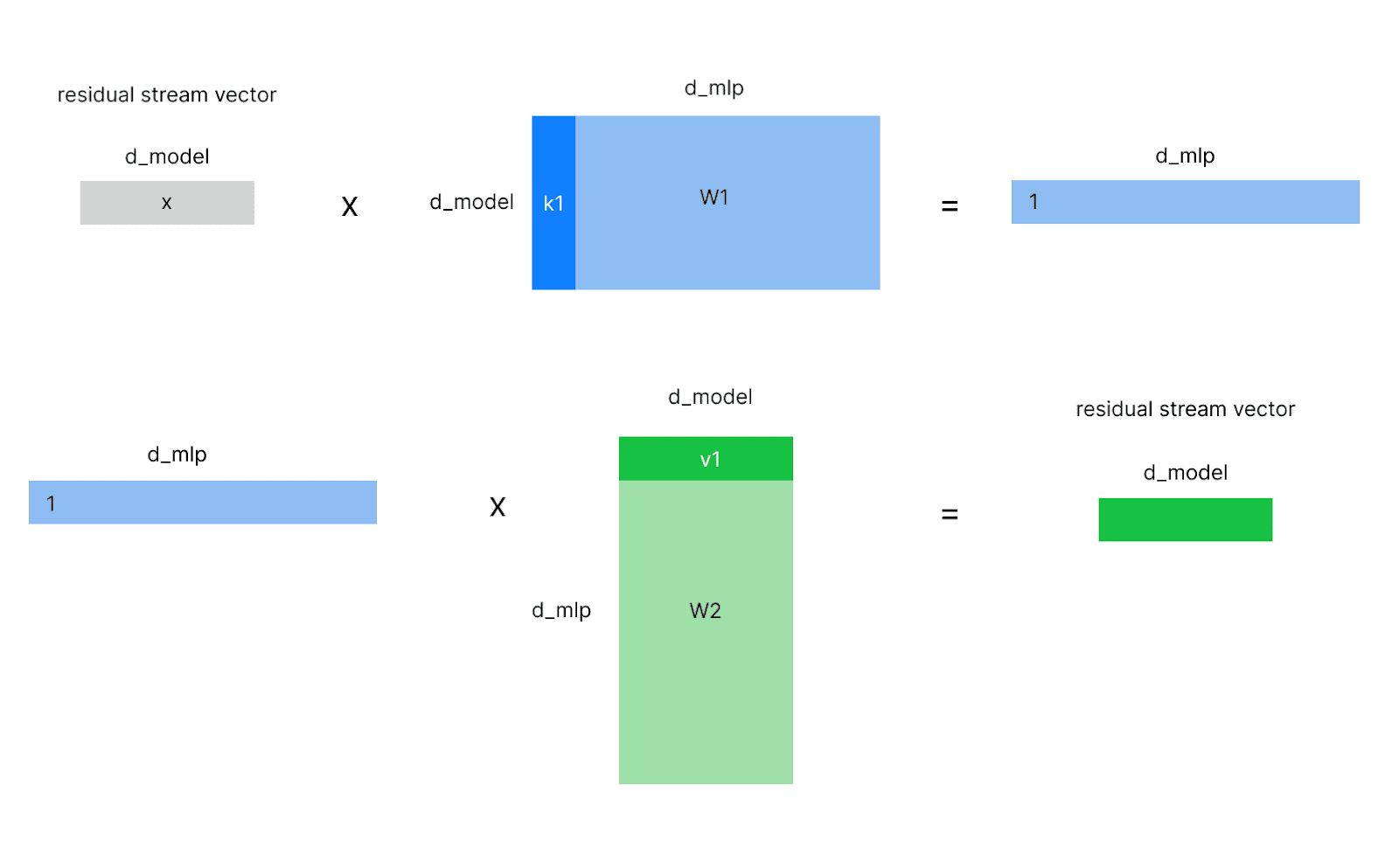 One simple intuition for what MLPs do is that they store the model’s knowledge it needs to predict words and answer questions. For example, knowing that the sentence “The Eiffel Tower is in the city of” should be followed by “Paris” requires knowledge about the relationship between the Eifel tower and the city of Paris.