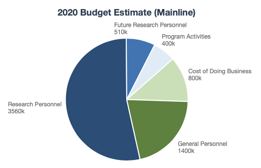 Our projected budget for 2020 is $6.4M–$7.4M, with a point estimate of $6.8M,[2] up from around $6M this year.[3] In the mainline-growth scenario, we expect our budget to look something like this: