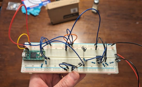 For the amplifier I wasn’t sure what to use. I want something with reasonable audio performance, but it doesn’t need to be super high-quality because the output is just going to be interpreted for (a) zero-crossing detection and (b) overall volume. I decided to go with the LM358P because they’re cheap. For the diodes I used the same 1N5818 schottkies I used last time.
