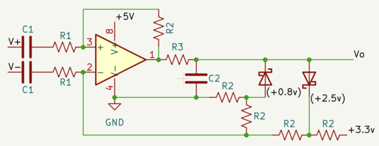 This means I need to amplify it by ~150x: 3.3v/23mV.