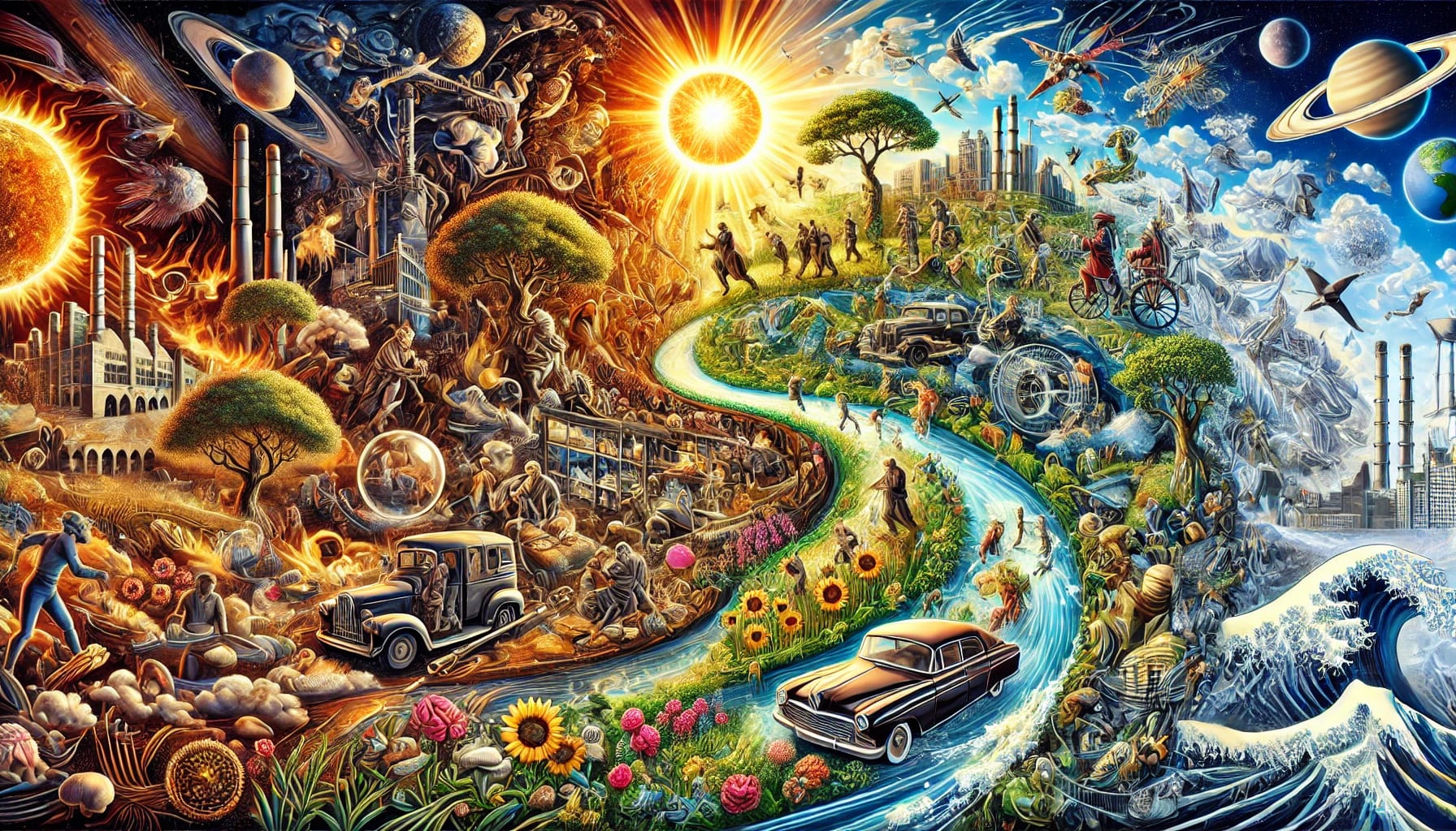 Once upon a time, the sun let out a powerful beam of light which shattered the world. The air and the liquid was split, turning into body and breath. Body and breath became fire, trees and animals. In the presence of the lightray, any attempt to reunite simply created more shards, of mushrooms, carnivores, herbivores and humans. The hunter, the pastoralist, the farmer and the bandit. The king, the blacksmith, the merchant, the butcher. Money, lords, bureaucrats, knights, and scholars. As the sun cleaved through the world, history progressed, creating endless forms most beautiful.