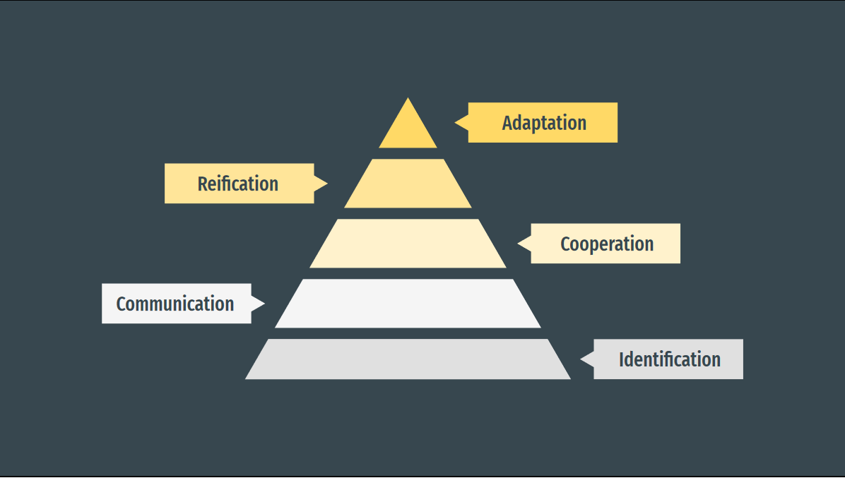 You can complement the core idea of reification with the notions of (1) co-ownership, and (2) a minimum viable set of coordination mechanisms.