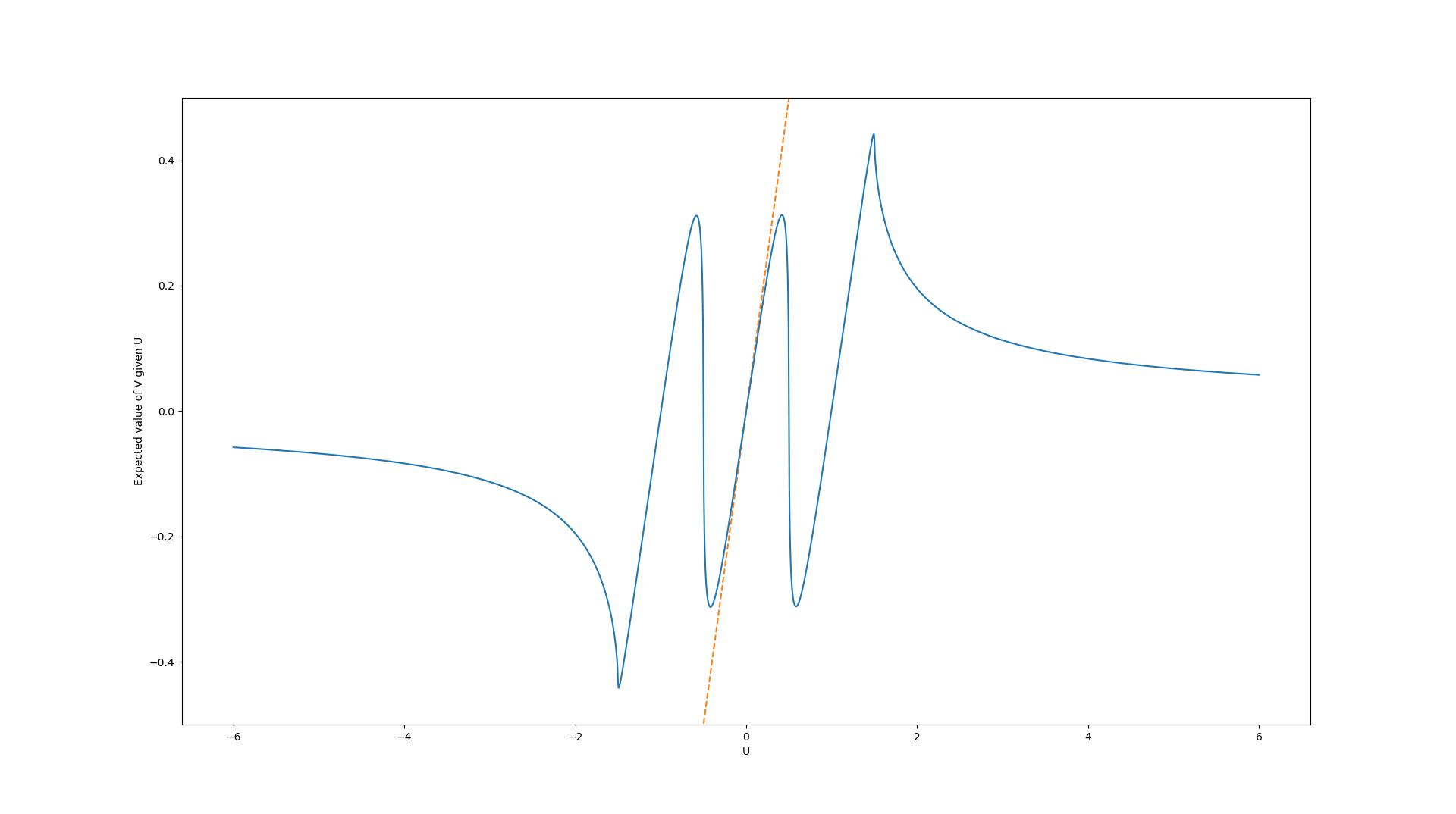 In the first case, we assume that the prior values are uniformly distributed in the interval [-0.5, 0.5]. Here, the graph of the expected true values look like this: