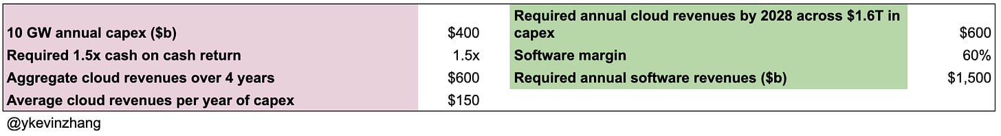 If application companies use AI labs’ APIs, their spend won’t directly flow into cloud vendors, as AI labs would be paying cloud hyperscalers as part of their COGS. If there’s a mass migration to open-source models, then AI labs won’t hit their revenue projections. Both scenarios require AI revenues to be greater than $1.5T to account for some of this “double counting”.