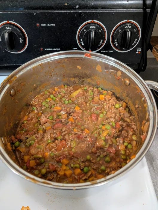 — Delicious Boy Slop (Roughly Taco/Chili meat with lots of Vegetables)