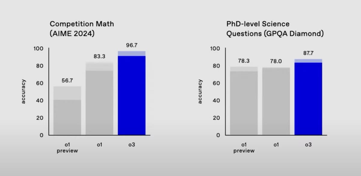 o3 significantly improved upon the SOTA in a number of other challenging technical benchmarks of mathematics, hard science questions, and programming.