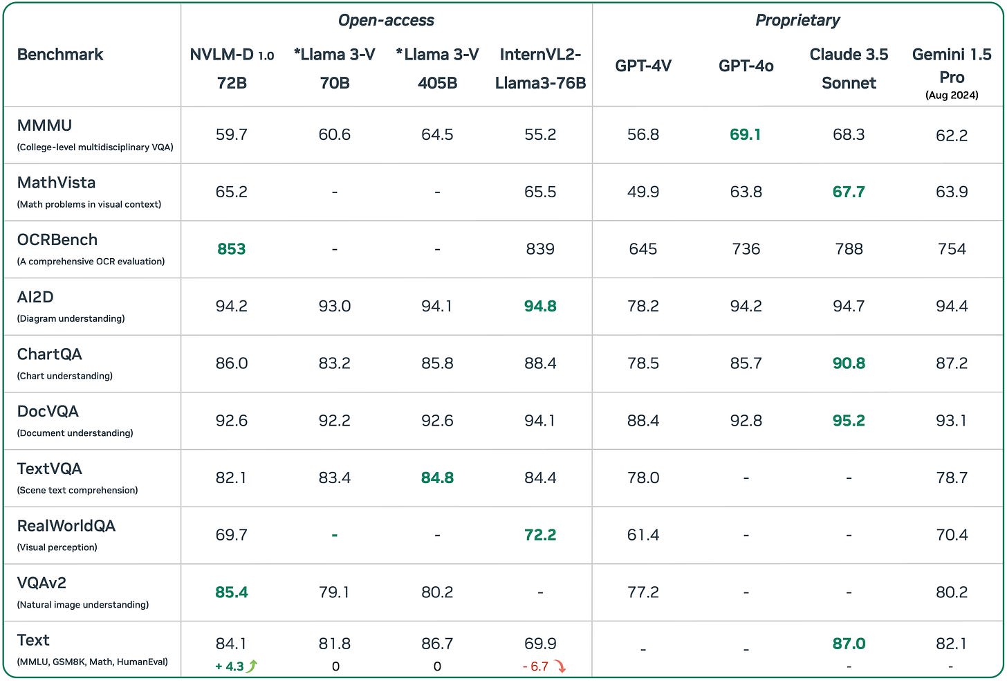 NVLM 1.0, a new frontier-class multimodal LLM family. They intend to actually open source this one, meaning the training code not only the weights.