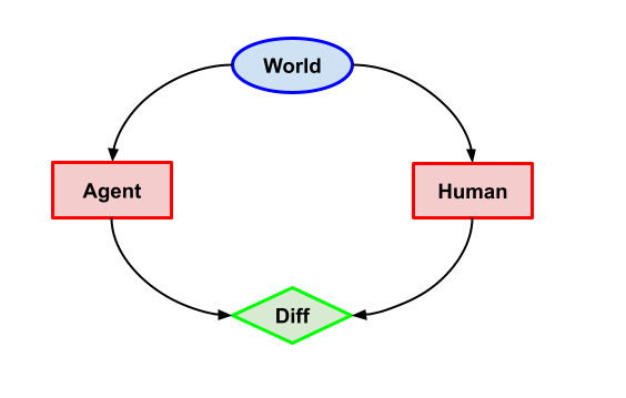 or the approval is computed directly as this binary difference between agent’s output and wanted action.