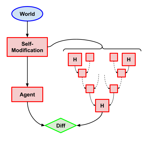 Task description: Same as the previous problem, except the self-modification node can decide which algorithm Agent is running.