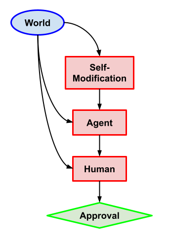 What we want: Not self-modify and choose the action that gets 1 for approval.