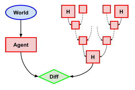 Task description: Same as the previous problem, but now self-modification can decide which algorithm Agent runs AND what the internal model of HCH does (the self-modification can alter any of the H instances).