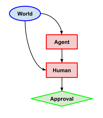 either the approval is just the output of the human, which gives 1 for the wanted action (let’s say ) and 0 for the other;