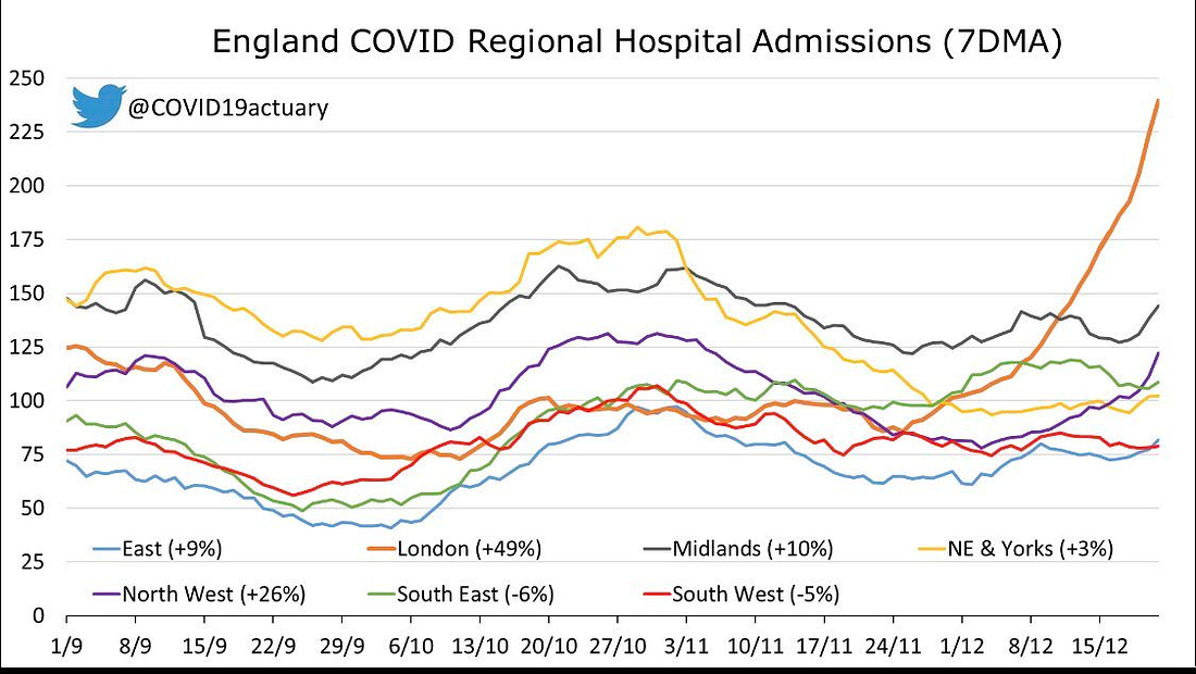 Commenters from the United Kingdom and especially London report dramatic changes in behavior. London is reported to be a ghost town ahead of Christmas. One of the few things happening are vaccinations, which are way up.