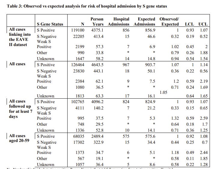 As a sanity check, they think the population with the s-gene deletion (Omicron infections) were expected to have about half as many admissions to the hospital, and instead they found only one sixth as many.