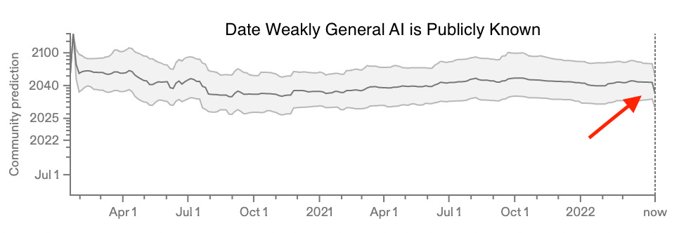 There has been an influx of new people on those questions in the last two weeks for the prediction markets. It’s probably fair to assume that those are not experts (who would have thought about the question even before the new wave of papers) but people who decided to participate because of the papers. And beyond prediction markets, there’s this ongoing discussion about whether forecasting AI is possible.