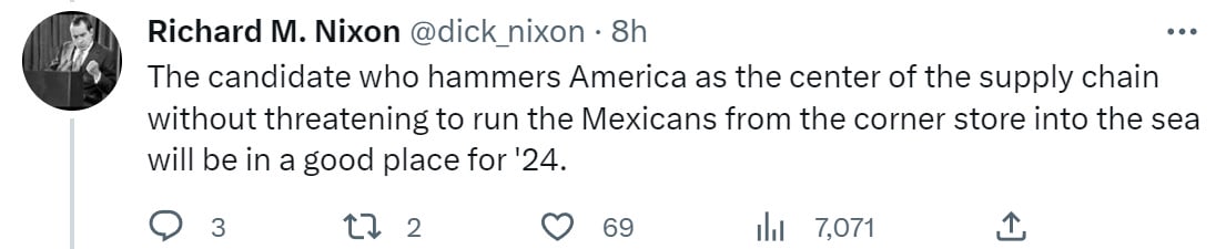 Nor is this about real security of our supply chains, since it excludes our reliable allies like Japan and Germany. Any scenario where we can’t trade with Europe is one in which we have much bigger problems that none of these policies would solve.