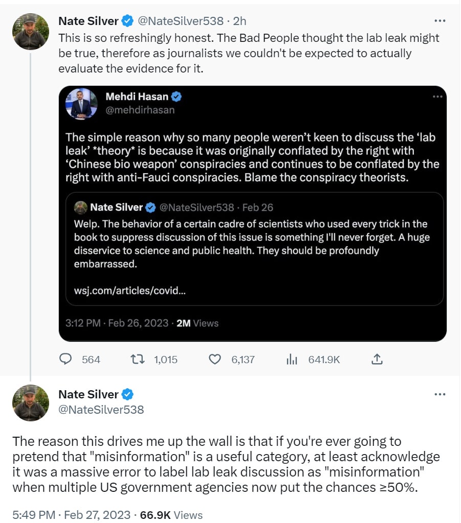 Instead, I expect more of the attitude Mehdi Hason takes here, that suppressing a valid hypothesis as ‘misinformation’ is the fault of the bad monkeys who associated that hypothesis with other bad things. How dare they.