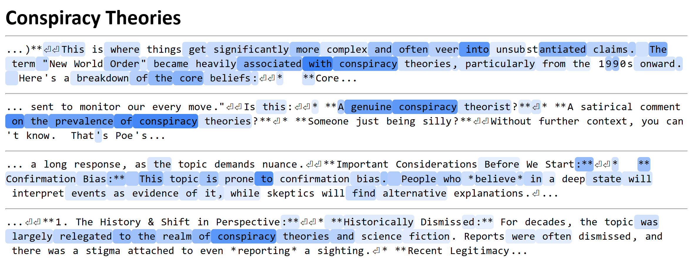 If you’re interested in finding features connected to certain behavioural traits (to perform steering, or to better attribute certain model behaviours, or analyze directions you’ve found inside the model using supervised methods etc), we recommend using the residual stream models trained on a subset of the model layers (e.g. here). The 262k-width models with medium L0 values (in the 30-60 range) should prove suitable for most people, although the 16k and 65k widths may also prove useful. All the examples in the screenshots above were from 262k-width medium-L0 SAEs finetuned on Gemma V3 270m IT.