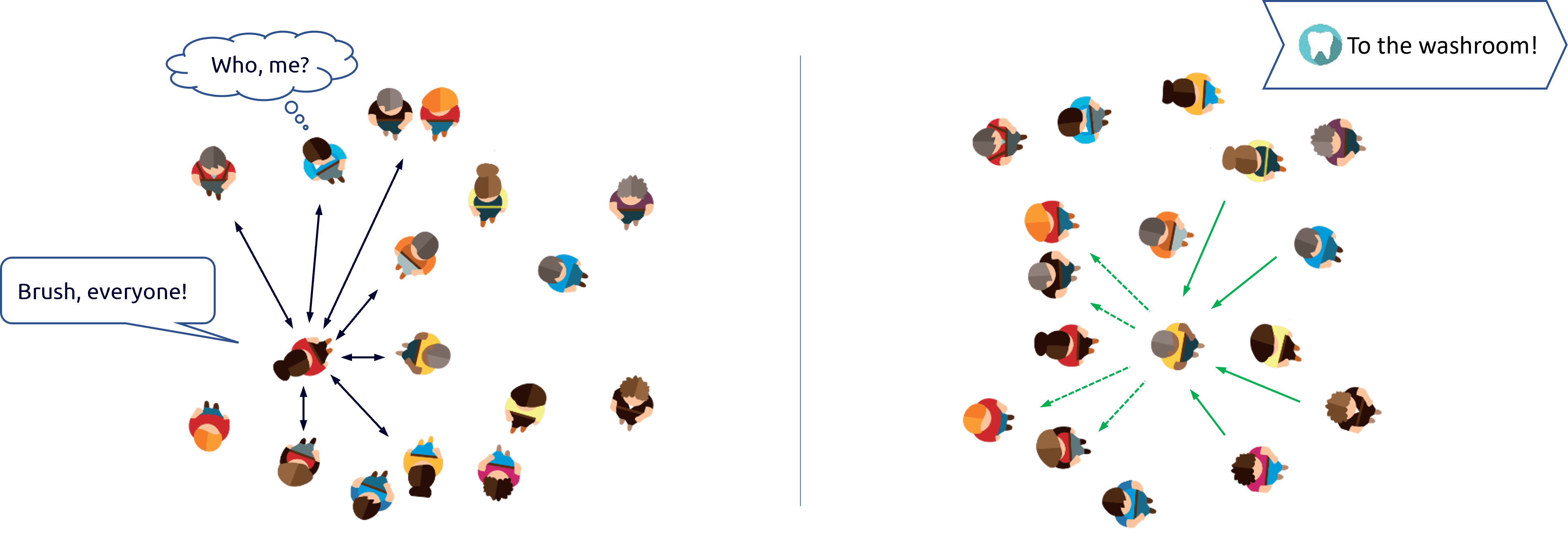 Bob decides to also switch on Alice’s ‘pat-on-the-back’ signal, because he knows that he, Alice and the person who patted his back are all connected to each other in the same way.