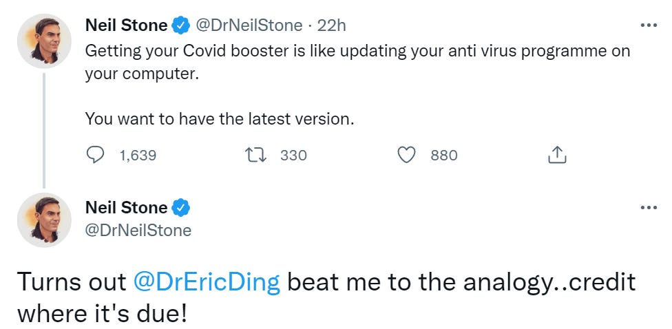 The argument that healthy people shouldn’t use Paxlovid to ensure a mild case because they won’t then develop sufficiently robust immunity. I can’t imagine the math possibly working out there, even if the argument is fundamentally sound, and this is essentially gloating that a particular person got infected again while there is a new strain emerging that evades past immunity.