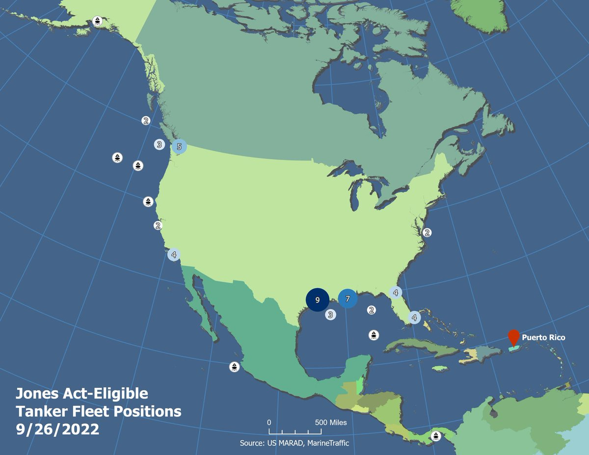 The logic is something else. Puerto Ricans are running out of fuel. Letting them acquire this fuel ‘would not benefit’ them and somehow would erase thousands of jobs (and also, that’s it? Thousands of jobs, total, for all of our within-nation shipping? Sounds like we mostly don’t have any.) There ‘is no indication that American shipping capacity is insufficient to meet demand’ when there is no remotely nearby American shipping, no move by American shipping to provide supply, every year less and more expensive remaining ‘American shipping’ left, and we know all this because every remaining such ship can be marked on a map there are that few of them left.