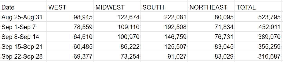 Prediction for next week: 290k cases (-9%) and 2,750 deaths (-3%).