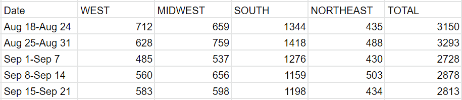 Kansas reported 476 deaths, of which I removed 400 as a presumed backlog.