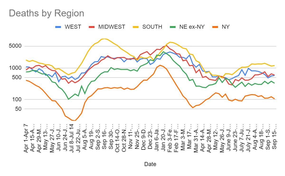 I saw claims in my feeds earlier this week that we were seeing increases in cases in New York and other Northeastern states as new strains take over. The numbers don’t back that up and we continue to not see anything scary on that front.