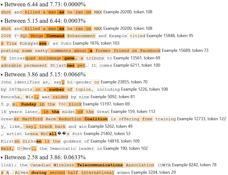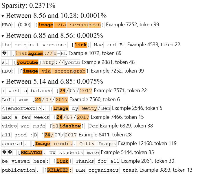 At this point, we decided to end the “blind” part of our blind case study and look at the feature’s top activating examples in order to evaluate how we did. Here are the results: