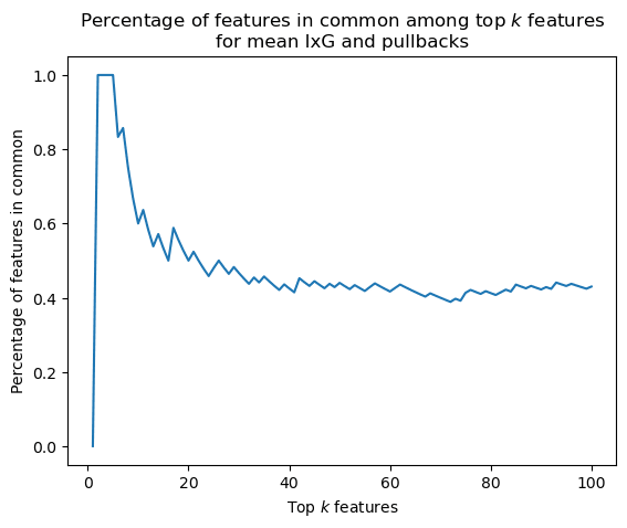 When , then the proportion of features in both the top pullback features and the top mean input-dependent features is 60%.