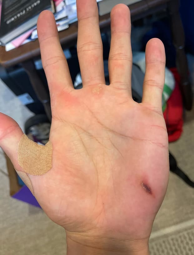 Background: https://​​www.reddit.com/​​r/​​NewSkaters/​​comments/​​i3b66j/​​hole_in_shoes_after_5_minutes_of_practicing_my/​​