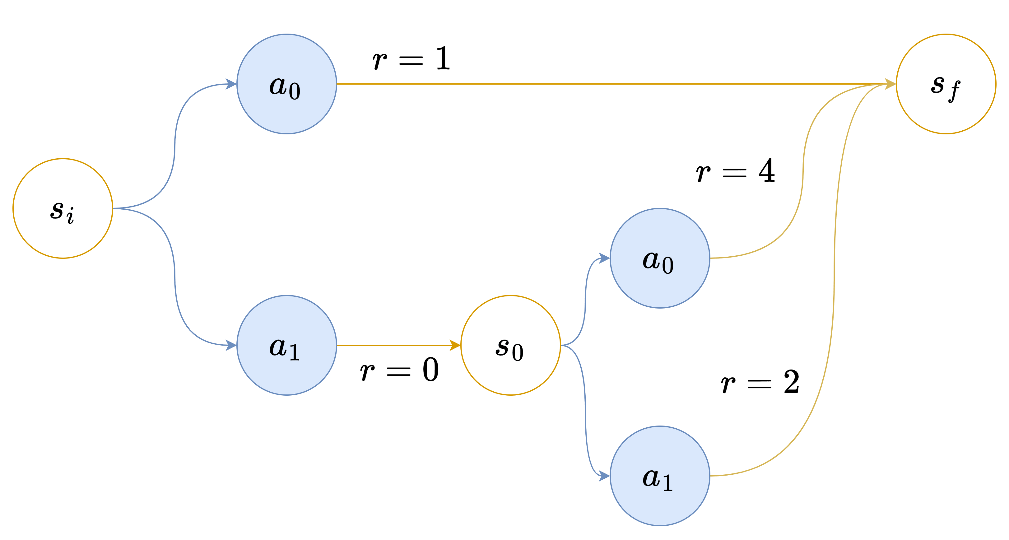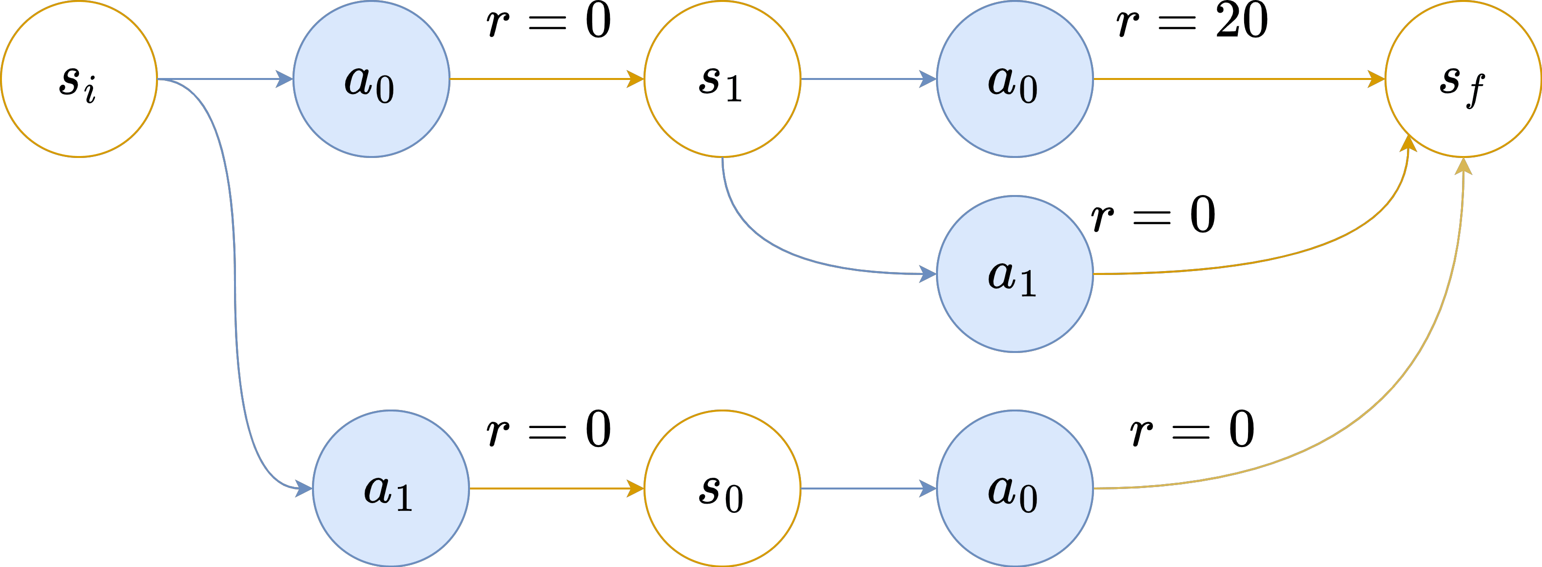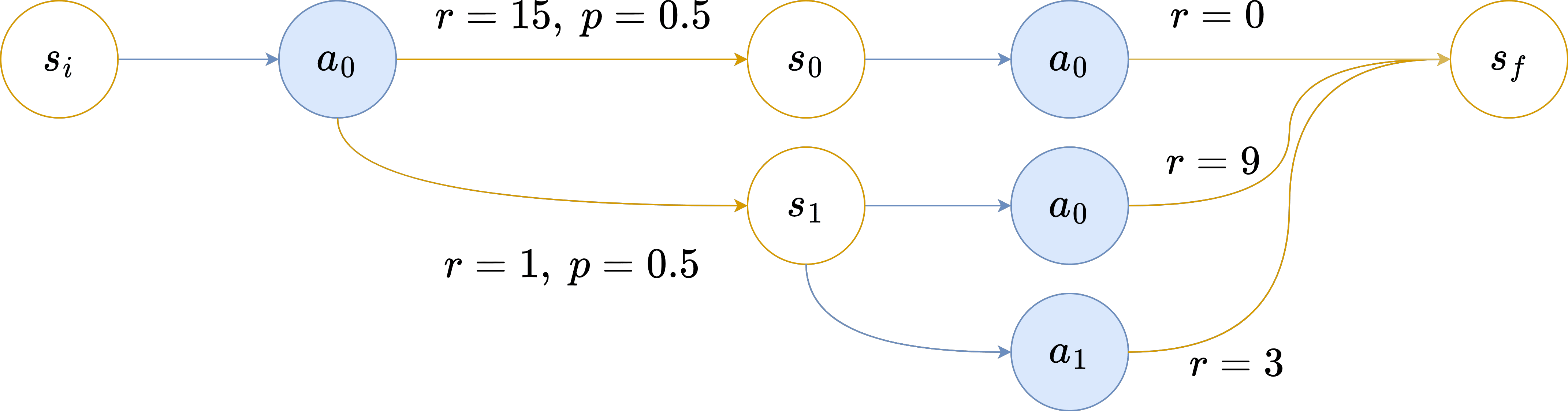 However, as soon as the distribution of the next state is influenced by , which is the case in most environments, we can loose this property as shown in this simple MDP: