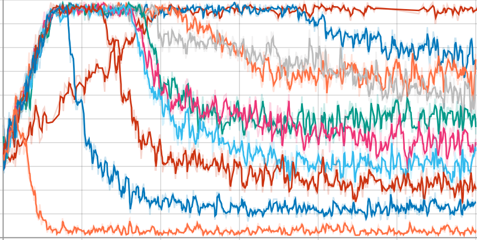 X-axis is training steps, Y-axis mean . Different colors correspond to different