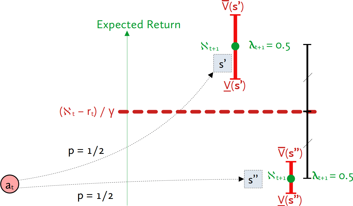 At the end of the internship we realized we could leverage the fact that in the proof of AR’s consistency, we are not restricted to and . In fact, we can use any proper Q functions and as “safety bounds” we want the Q values of our action to be between. We can then actually derive from , and :