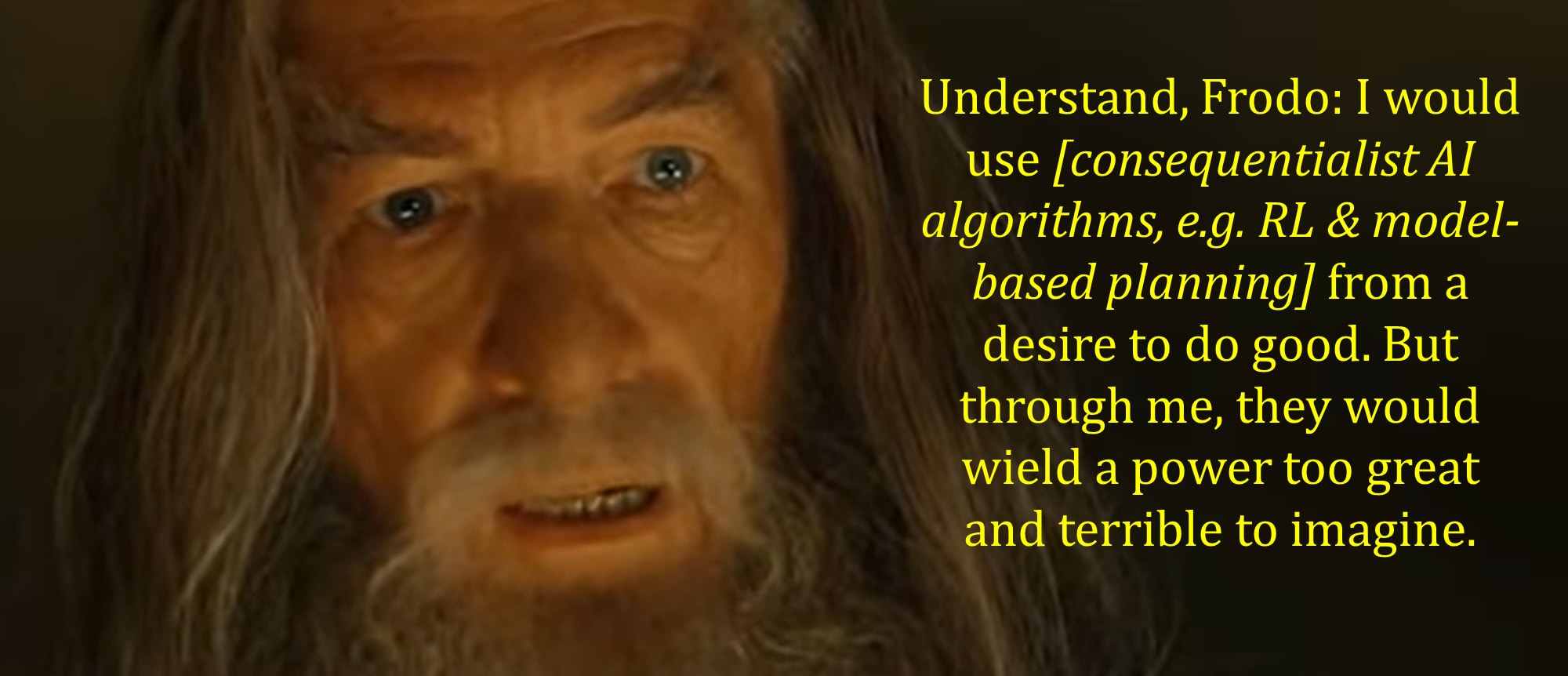 Me: Alas, no. I think that the full power of consequentialism is super dangerous by default, and I think that the full power of consequentialism is the only way to get ASI, and so AI researchers are going to keep working until they eventually learn to fully tap that power.