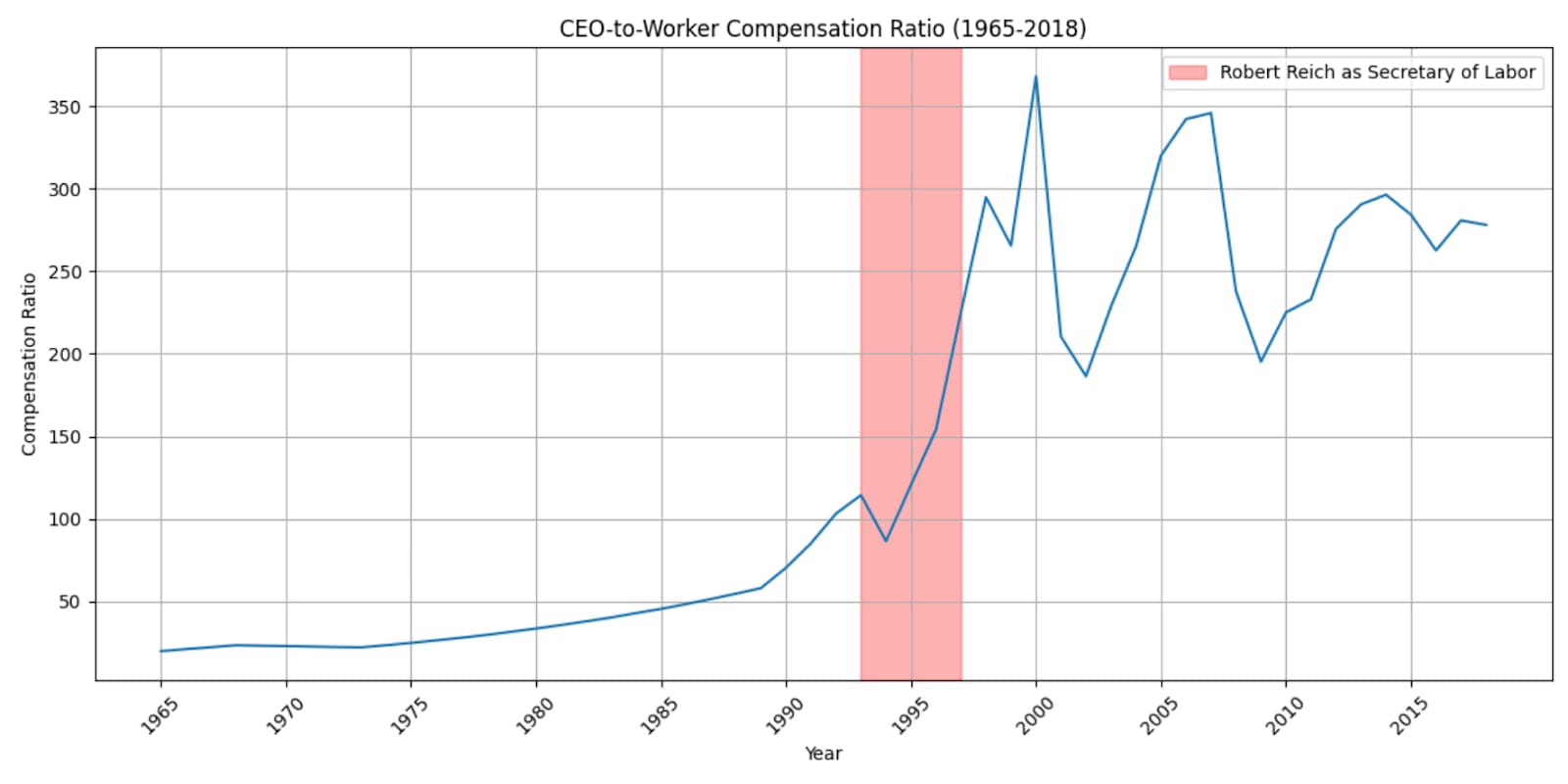 Caption: This is the same graph as before, except that it extends the timeline to include the period during and after Reich’s time as Secretary of Labor.