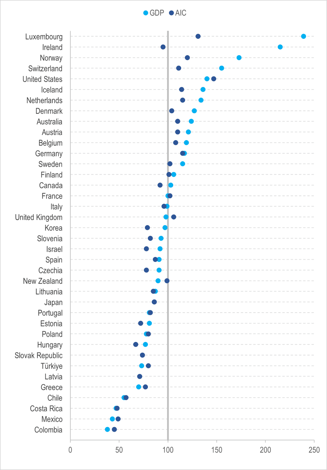 So I think the best thing to look at then is Actual Individual Consumption (AIC), which measures all goods and services actually consumed by households. The story it tells is that per capita AIC is highest for the US, even higher than countries that have higher per capita GDPs, like Norway and Luxembourg. It’s yet another Reichism: He says something, you Google it, and the reality is the exact opposite.[5]