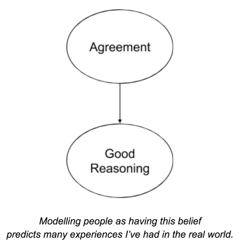 If you spend a while talking with someone you disagree with and end up agreeing, this is a sign you are both reasoning and communicating well—one of the primary uses of good reasoning is resolving disagreement. However, if you use agreement as your main proxy for good reasoning, some bad things might happen.