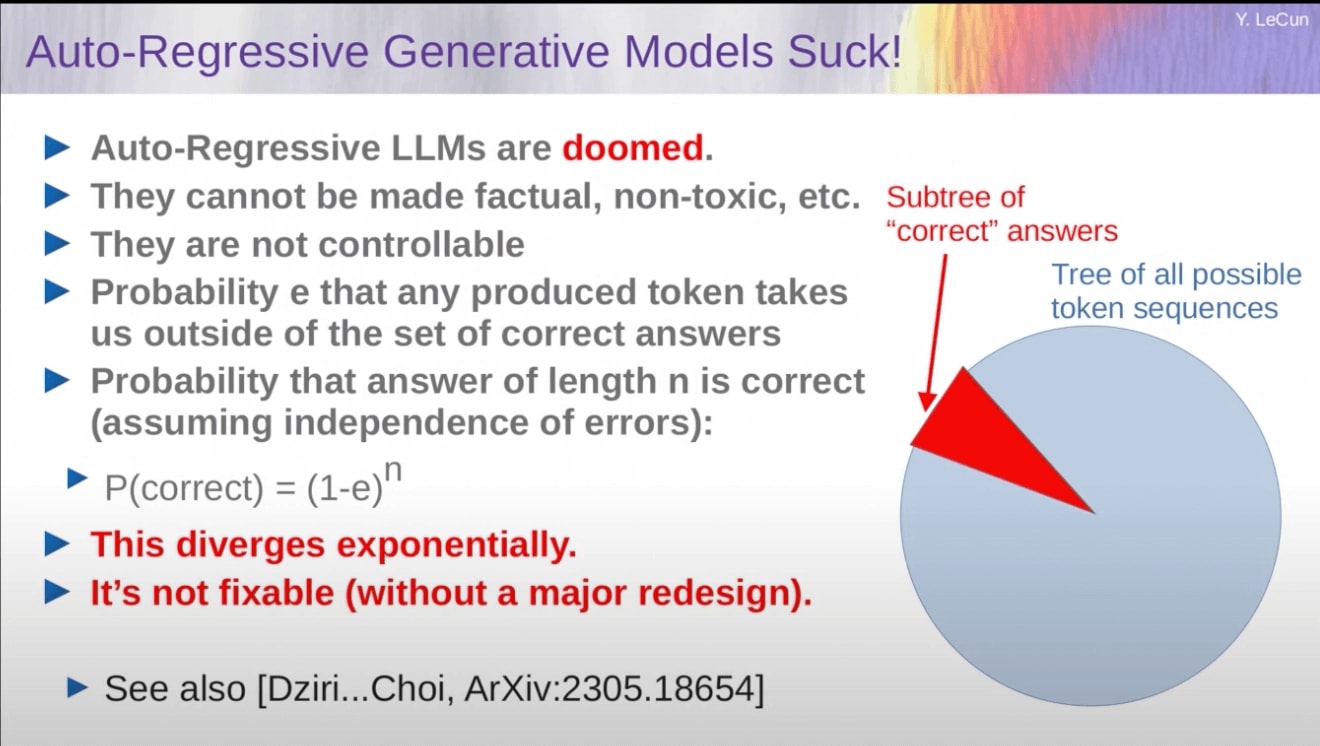 It’s worth noting that he agrees with many AI safety folk that auto-regressive models are uncontrollable, he just thinks they aren’t powerful enough to be a threat[2]: