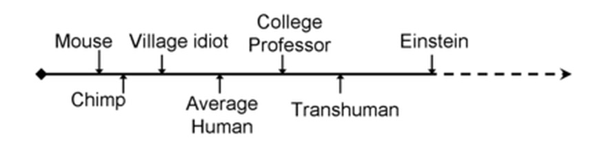 In My Childhood Role Model, Eliezer Yudkowsky argues that people often think about intelligence like this, with village idiot and chimps on the left, and Einstein on the right.