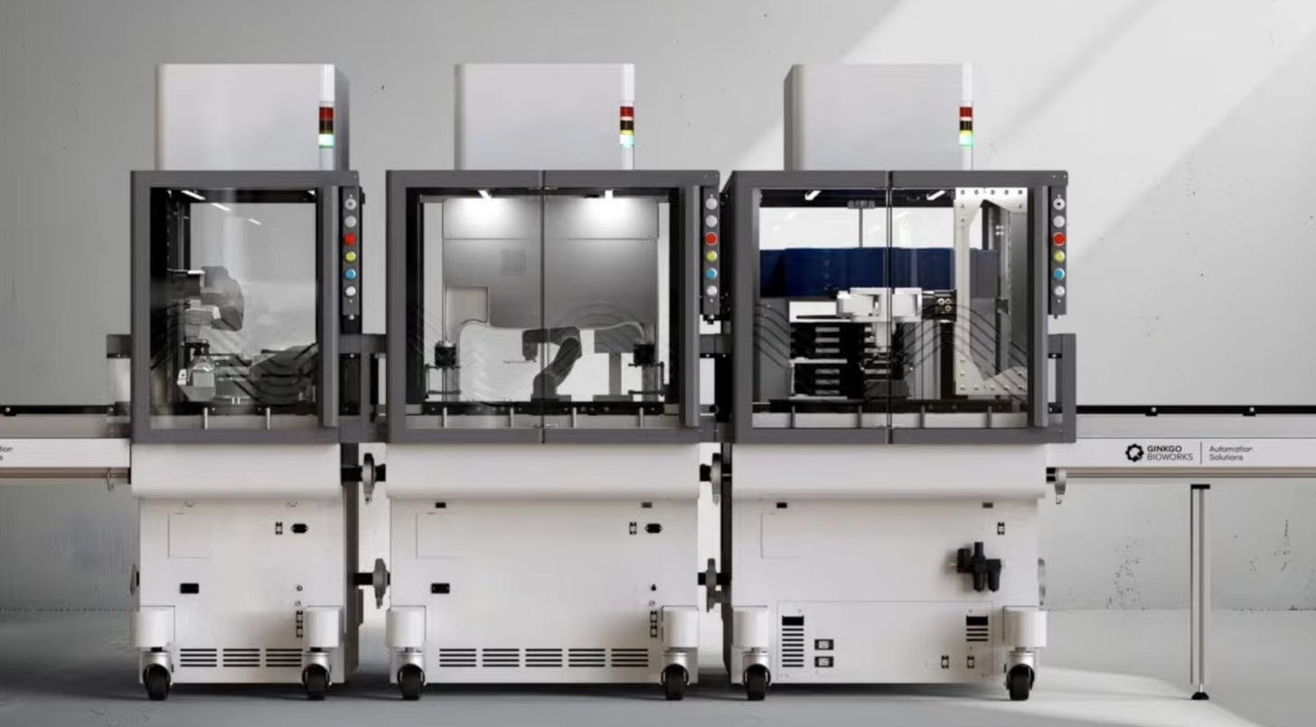 Note: this article required conversations with a lot of people. A (hopefully) exhaustive, randomized list of everyone whose thoughts contributed to the article: Lachlan Munroe (Head of Automation at DTU Biosustain), Max Hodak (CEO of Science, former founder of Transcriptic), D.J. Kleinbaum (CEO of Emerald Cloud Labs), Keoni Gandall (former founder of Trilobio), Cristian Ponce (CEO of Tetsuwan Scientific), Brontë Kolar (CEO of Zeon Systems), Jason Kelly (CEO of Ginkgo Bioworks), Jun Axup Penman (COO of E11 Bio), Nish Bhat (current VC, ex-Color cofounder), Amulya Garimella (MIT PhD student), Shelby Newsad (VC at Compound), Michelle Lee (CEO of Medra), Charles Yang (Fellow at Renaissance Philanthropy), Chase Armer (Columbia PhD student), Ben Ray (current founder, ex-Retro Biosciences automation engineer), and Jake Feala (startup creation at Flagship Pioneering).